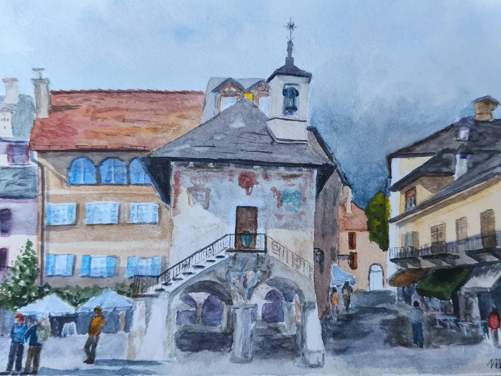 Eine kleine Mittagspause in Schlanders am Etschradweg, zum Essen und ein bisschen sketchen. Auch hier gibt es genügend Motive.